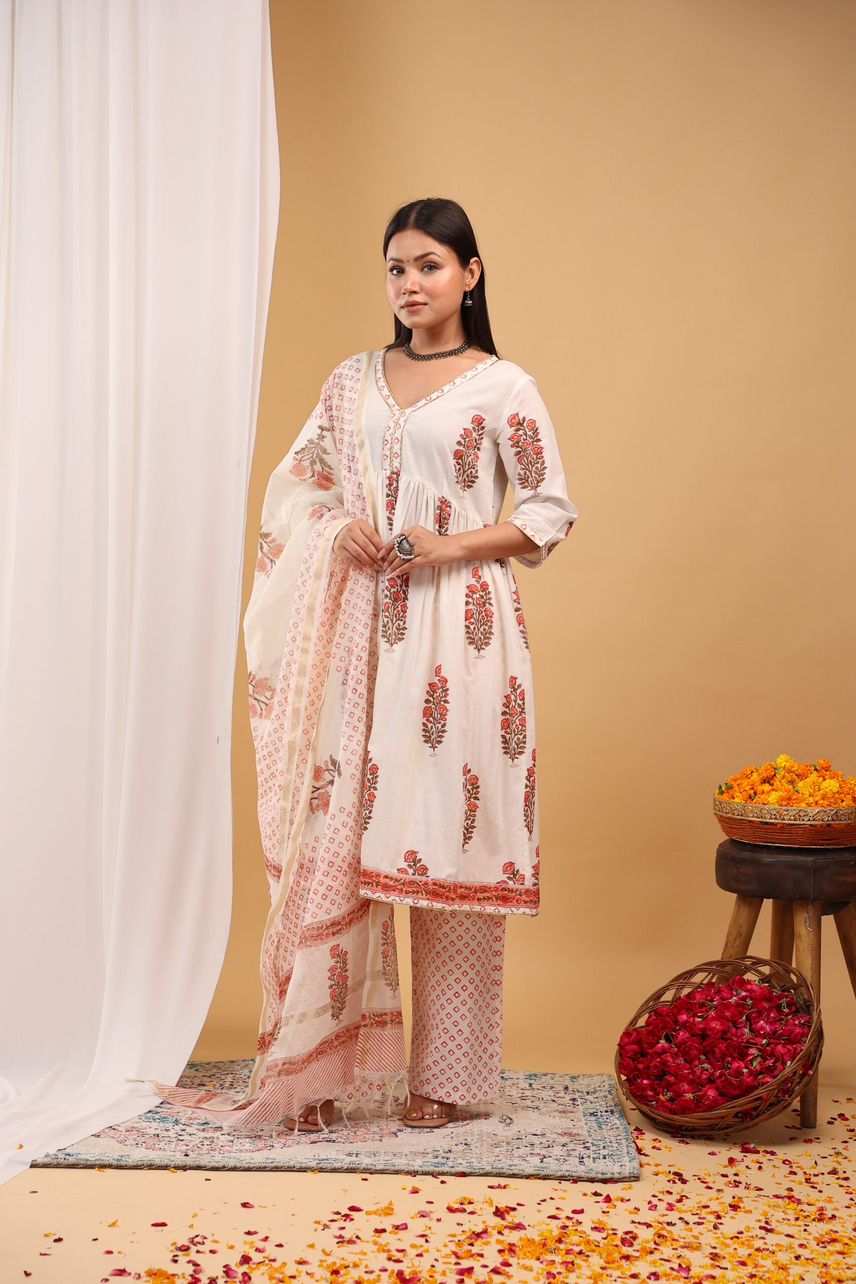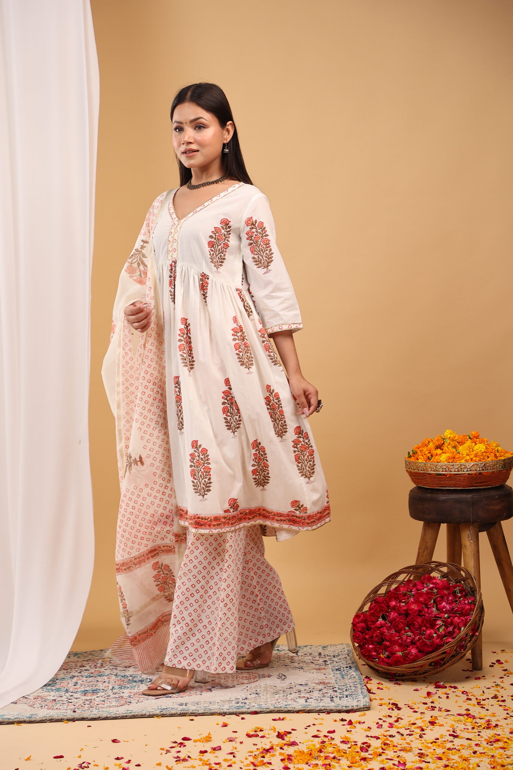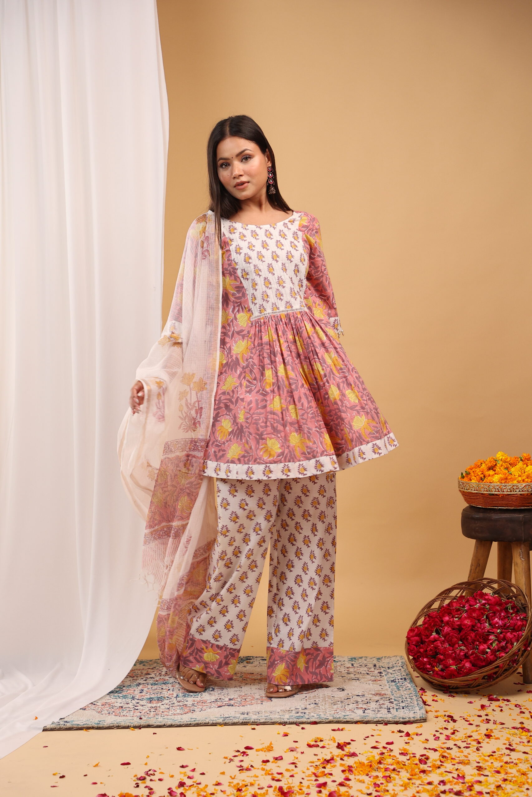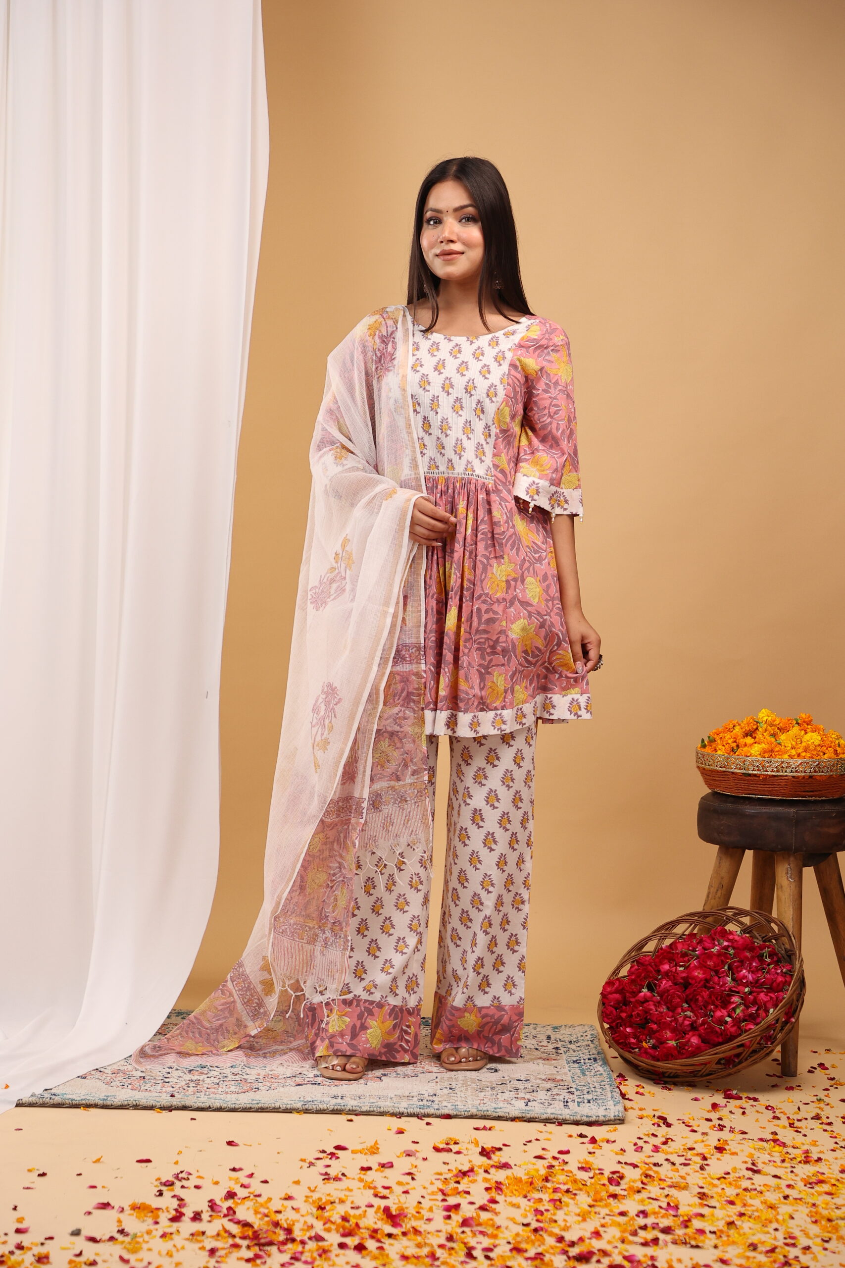 Rosewood Garden Printed Kurta Palazzo Set with Dupatta