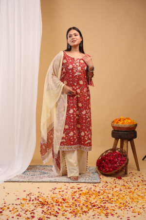Rosewood Garden Printed Kurta Palazzo Set with Dupatta
