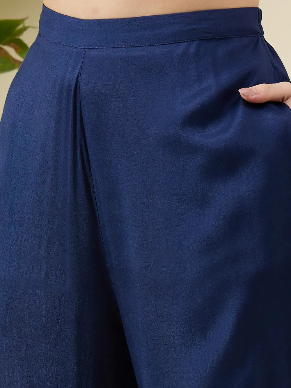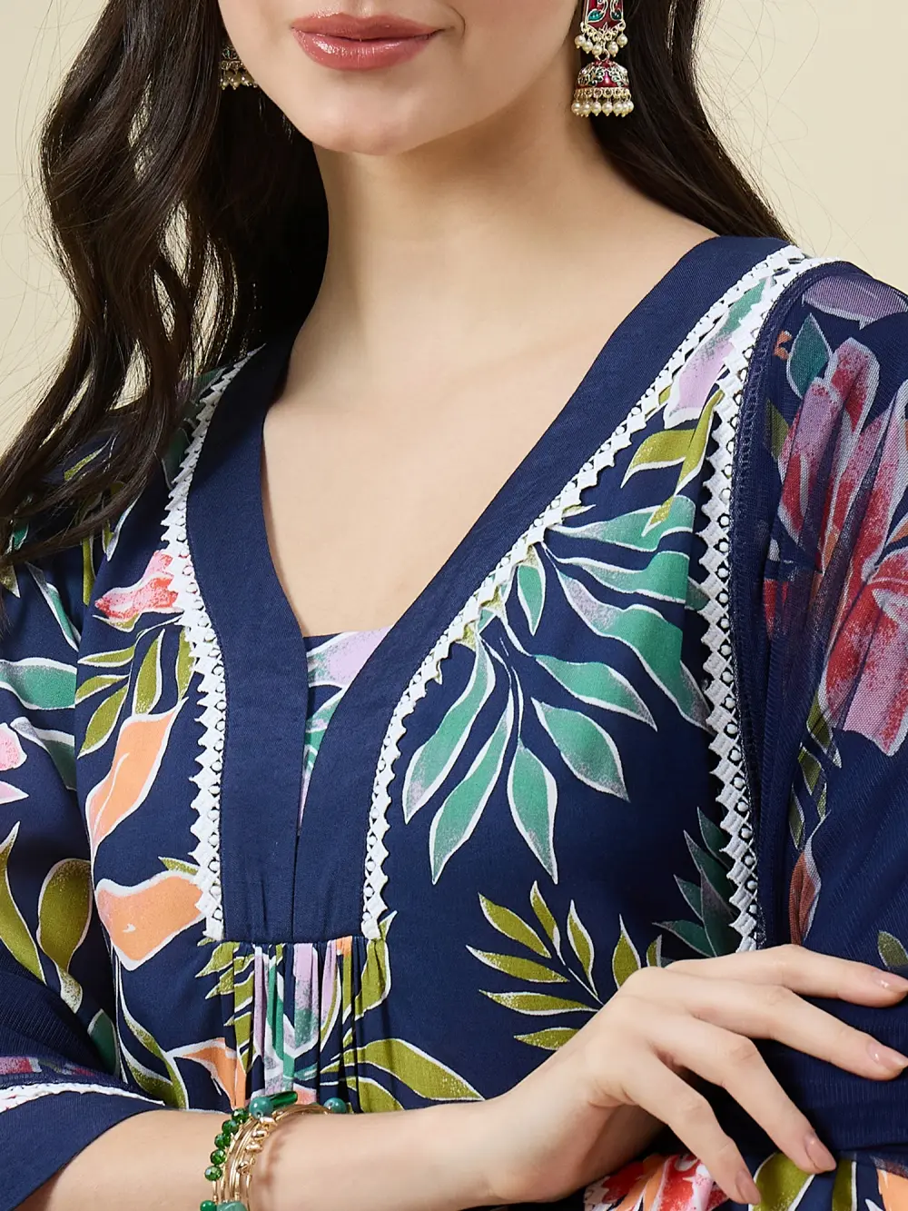Navy Blue, Green, Pink Printed Kurta with Palazzos & Dupatta