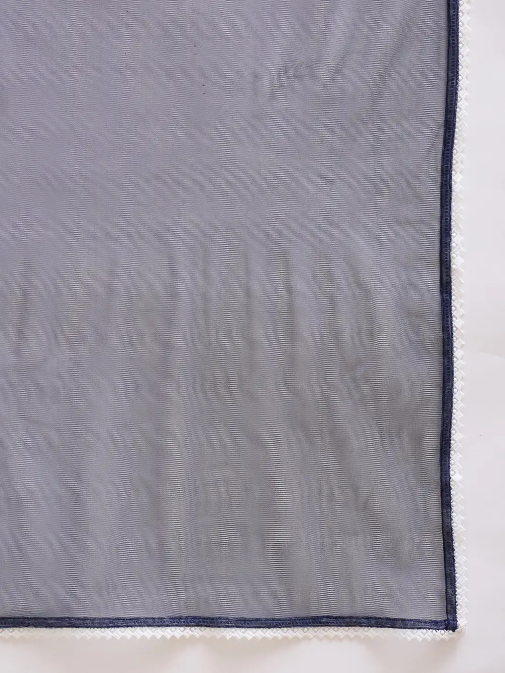 Blue Cotton Kurta Set, adorned with delicate floral prints and lace accents. Crafted from breathable cotton, this ensemble offers effortless elegance for everyday wear or casual gatherings. The soothing blue tone and intricate details add a touch of grace to your daily style.