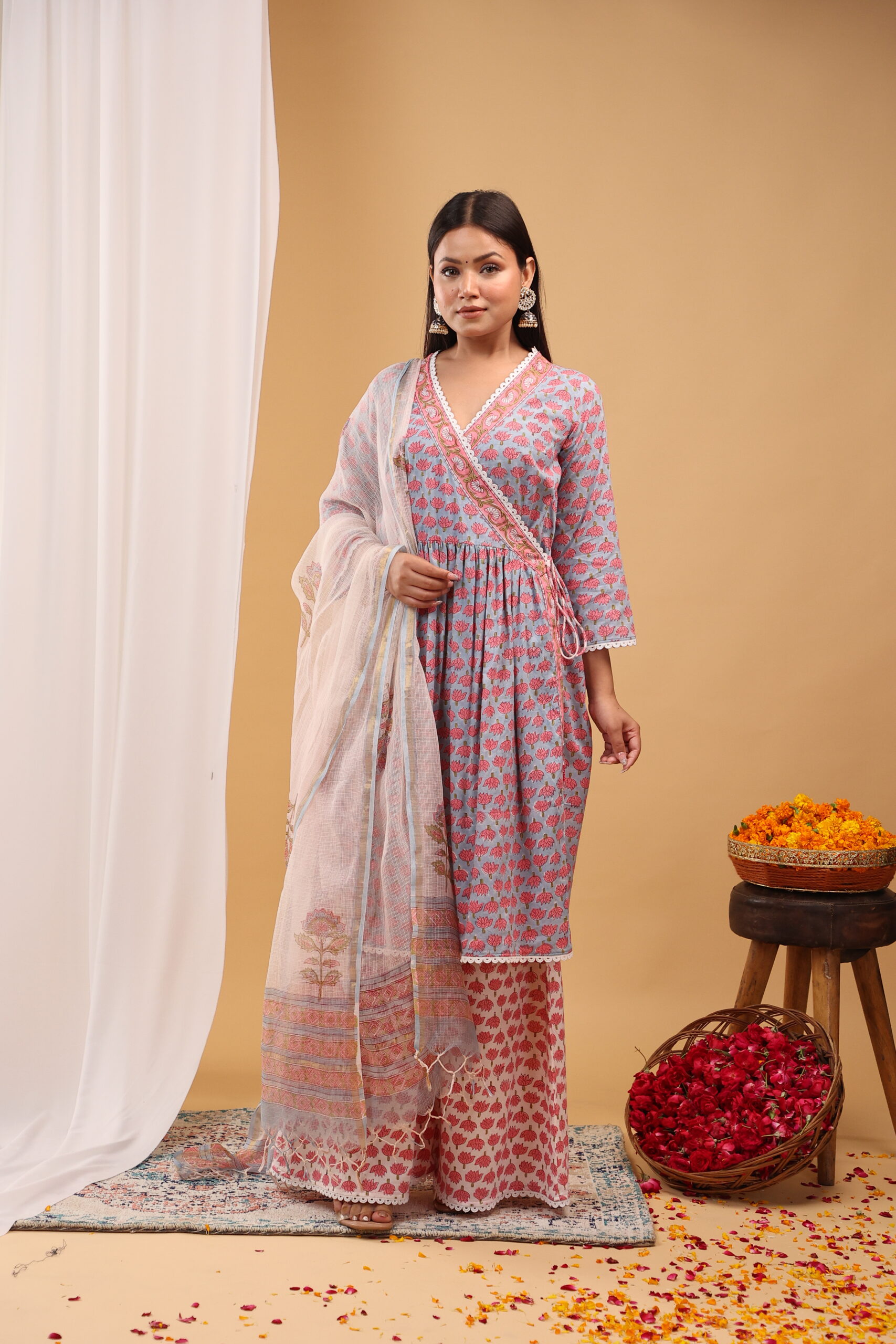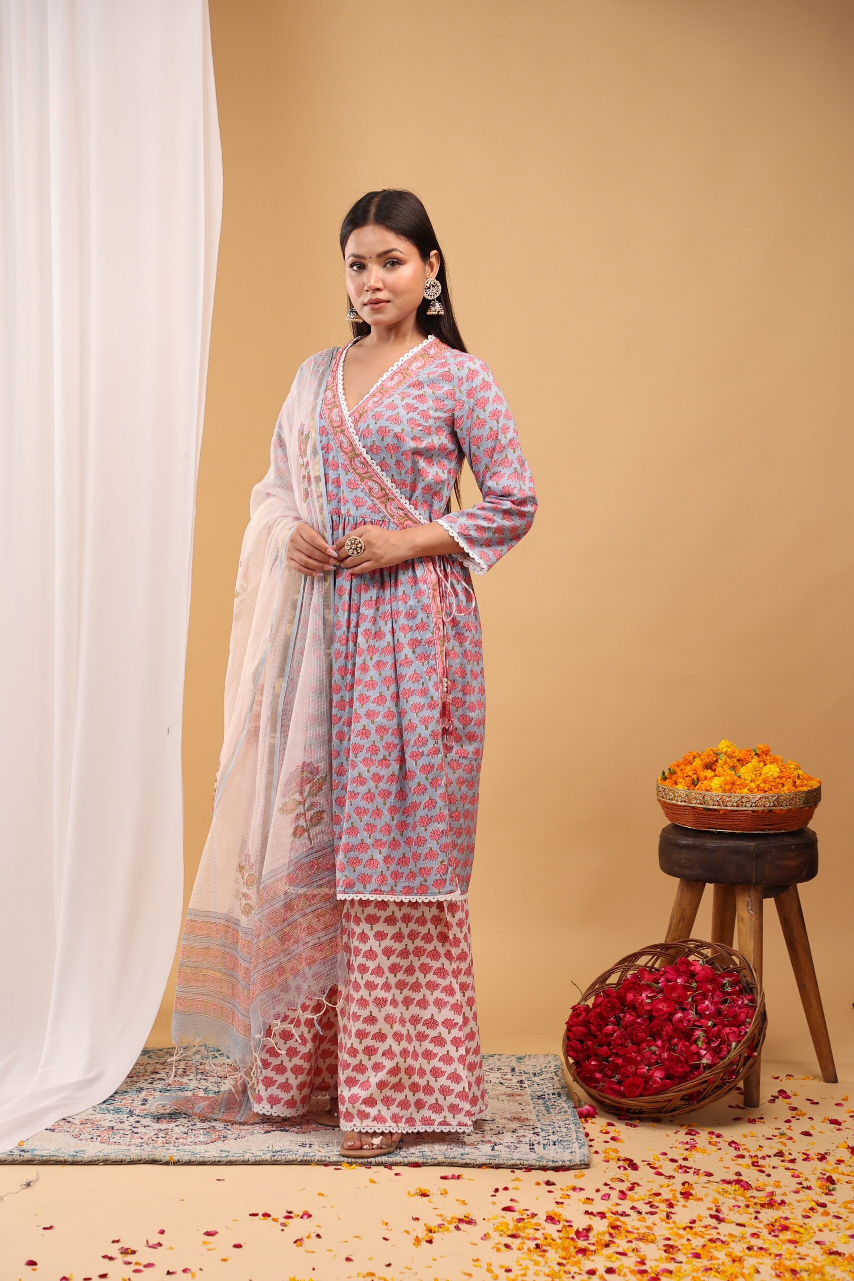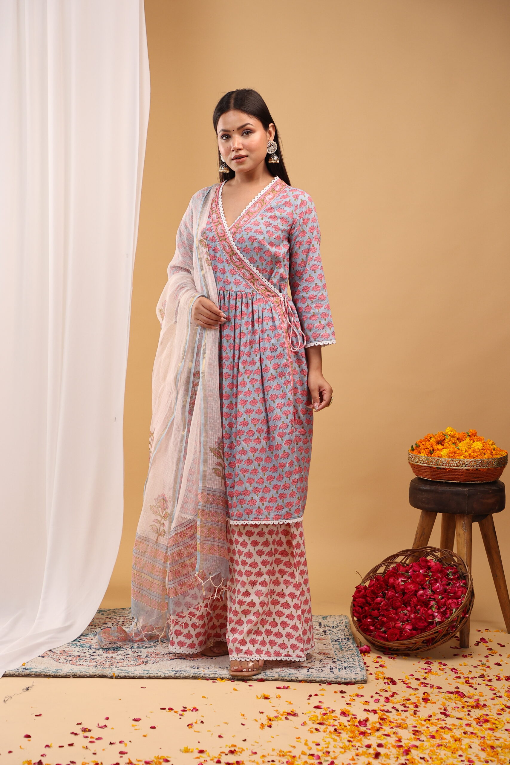 Rosé Charm Printed Kurta Palazzo Set with Dupatta