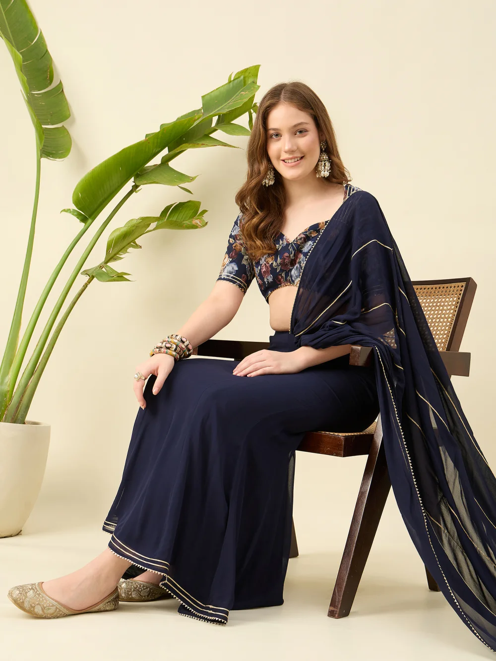 Navy blue printed lehenga choli with dupatta, gotta patti