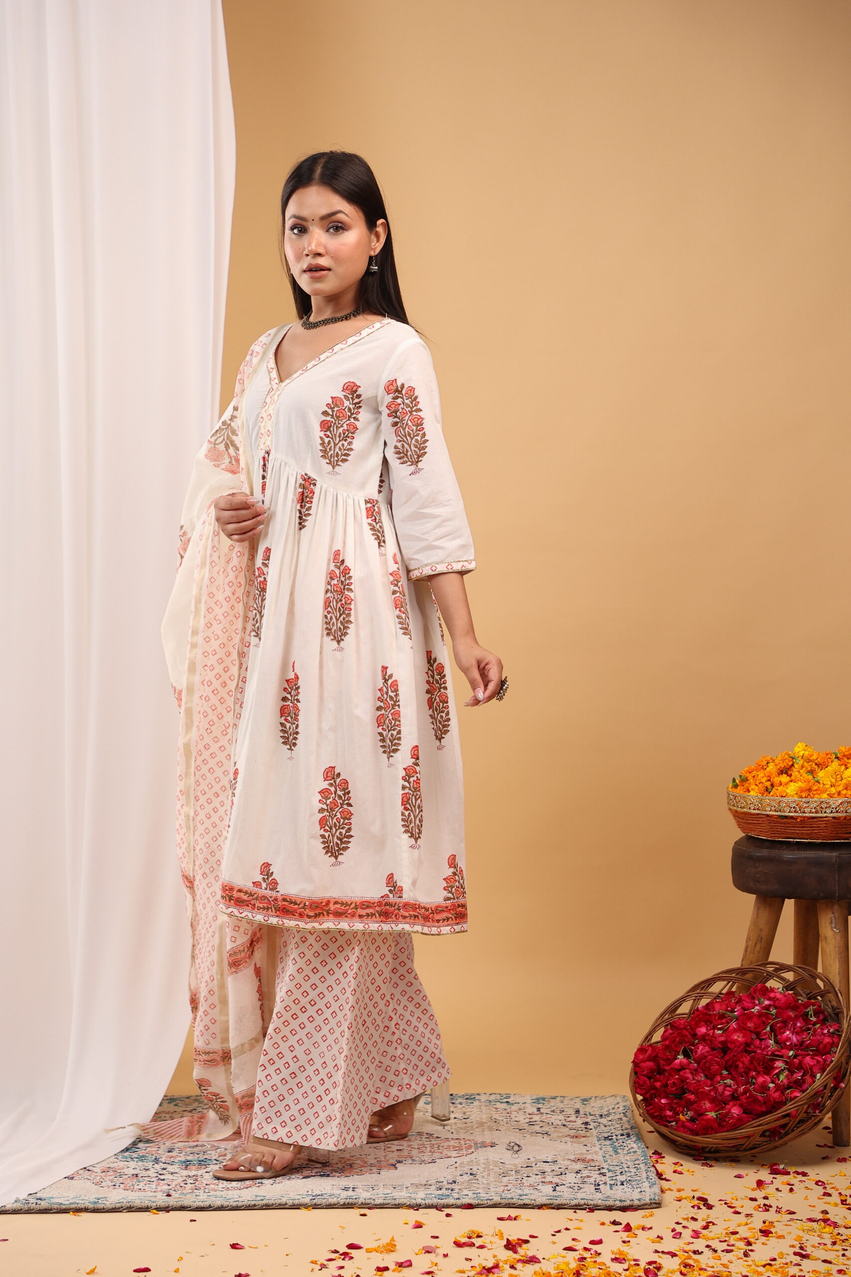 Rosewood Garden Printed Kurta Palazzo Set with Dupatta