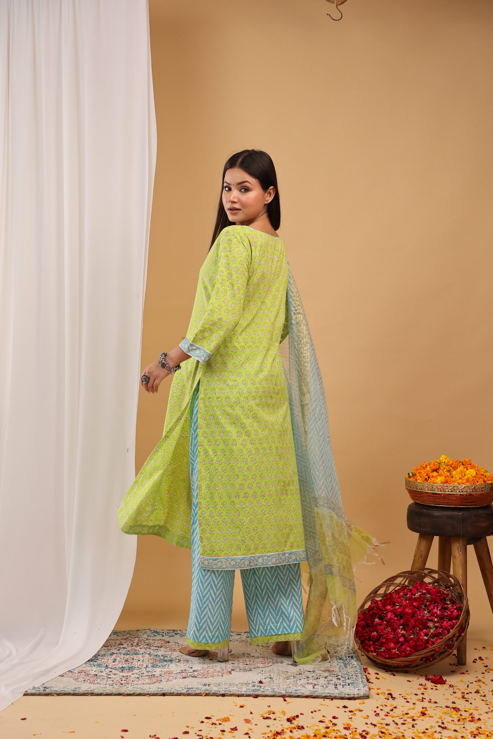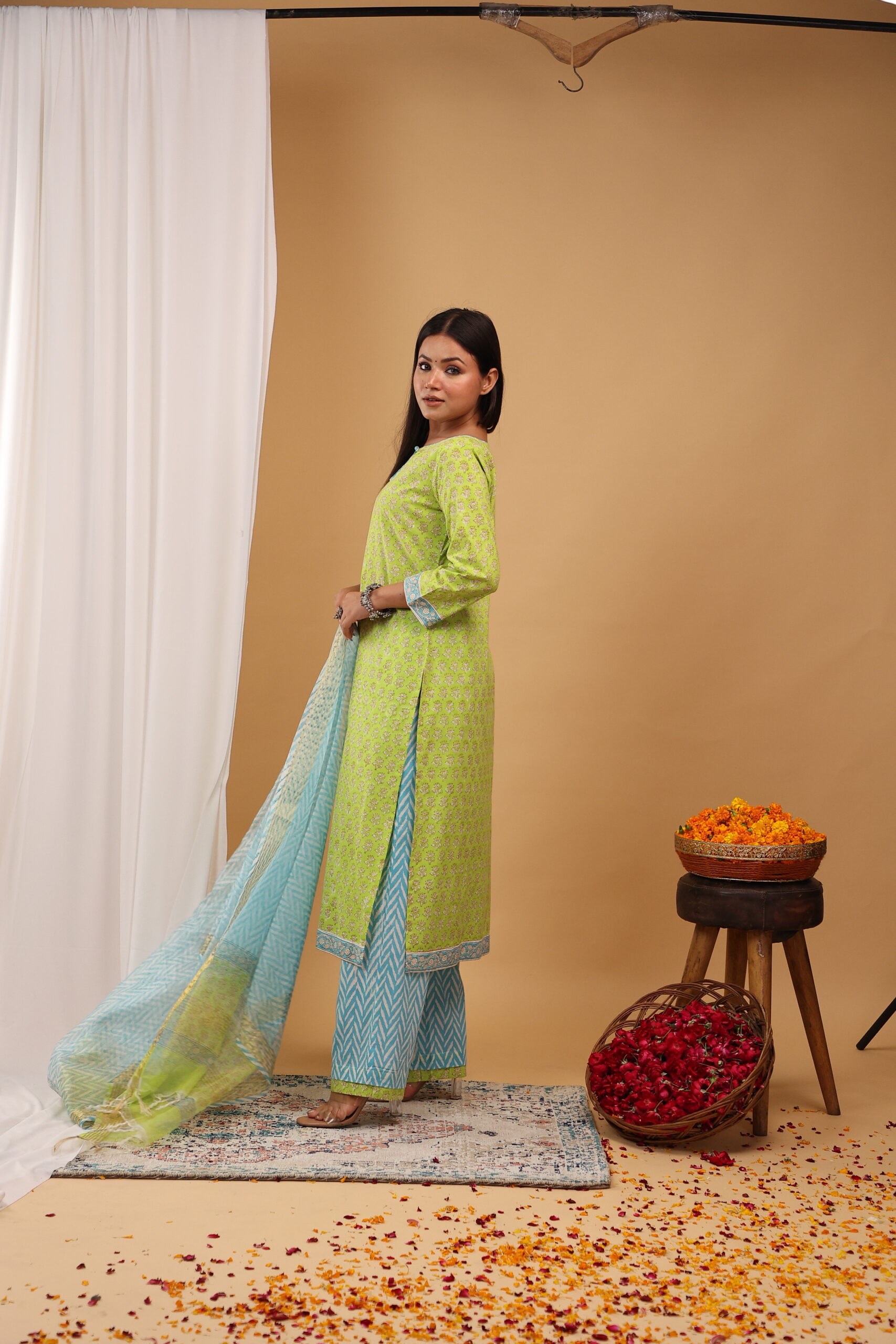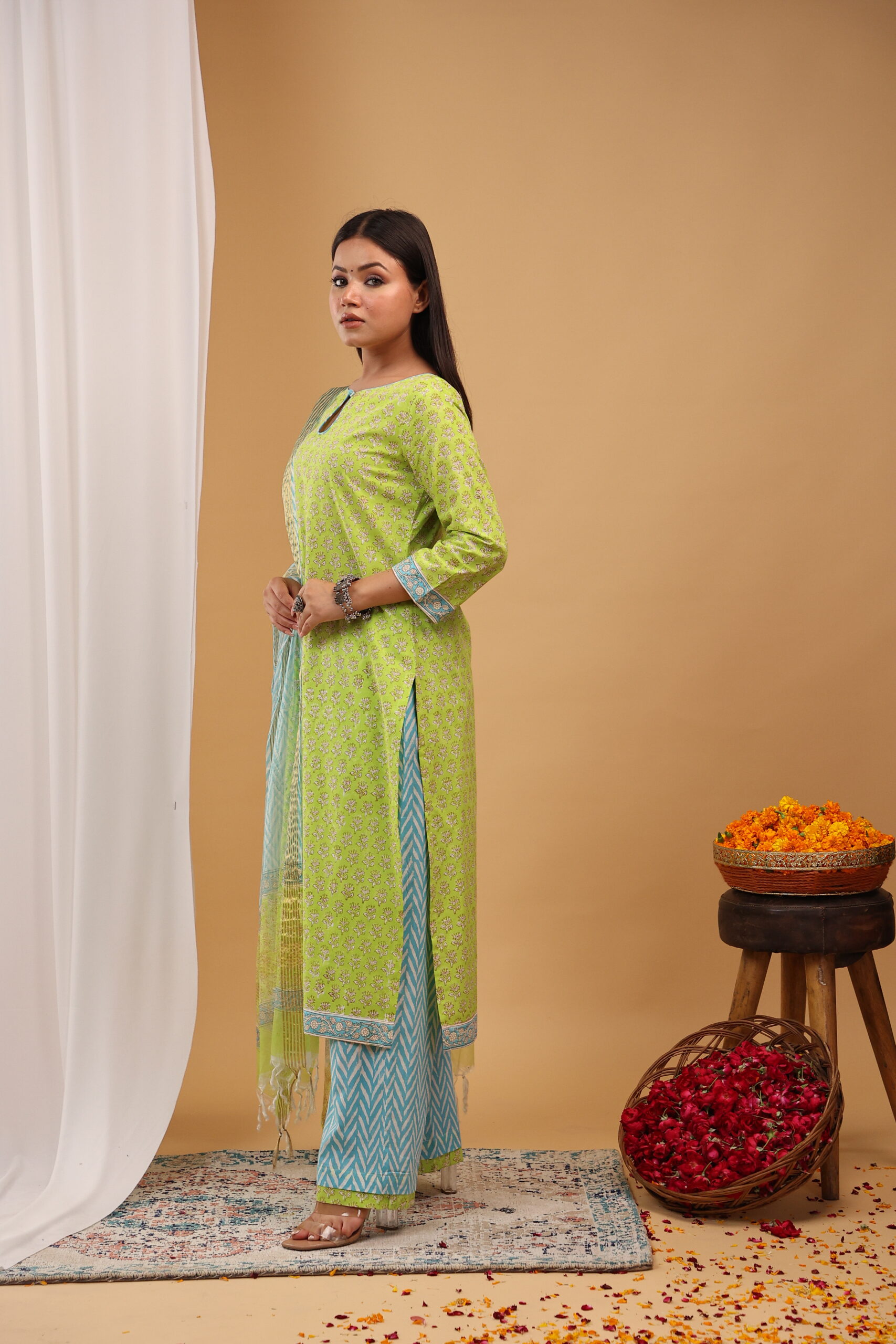 Add a refreshing pop of colour to your ethnic collection with this Lime Breeze Kurta Set, crafted in vibrant hues and delicate traditional prints for a lively festive look.