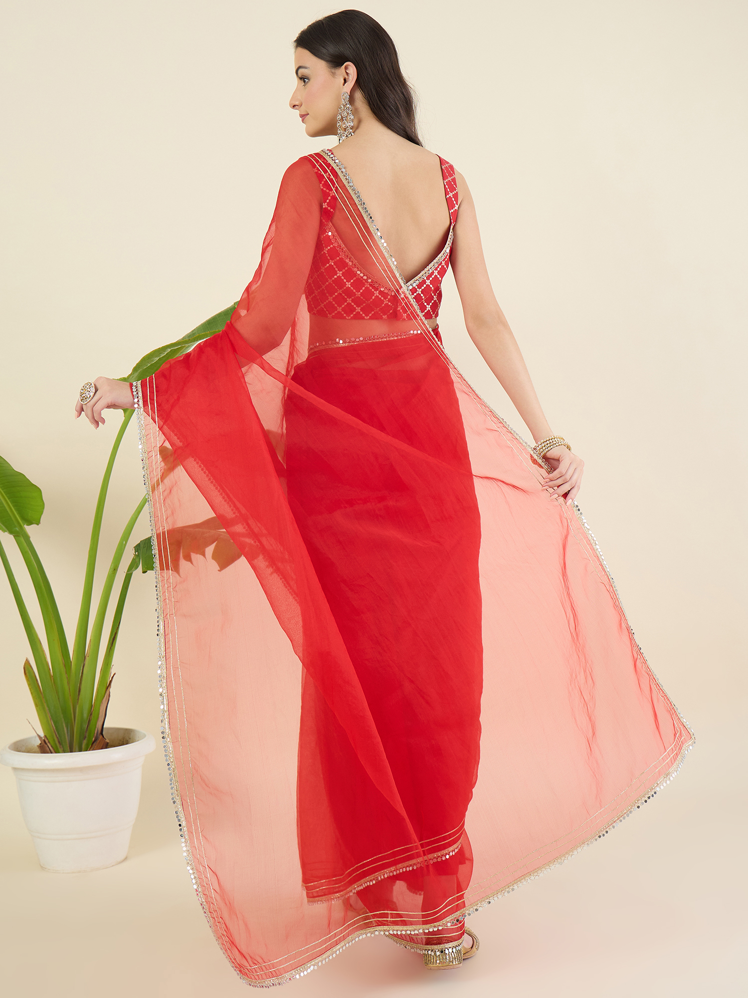 Red & gold ombre-color saree