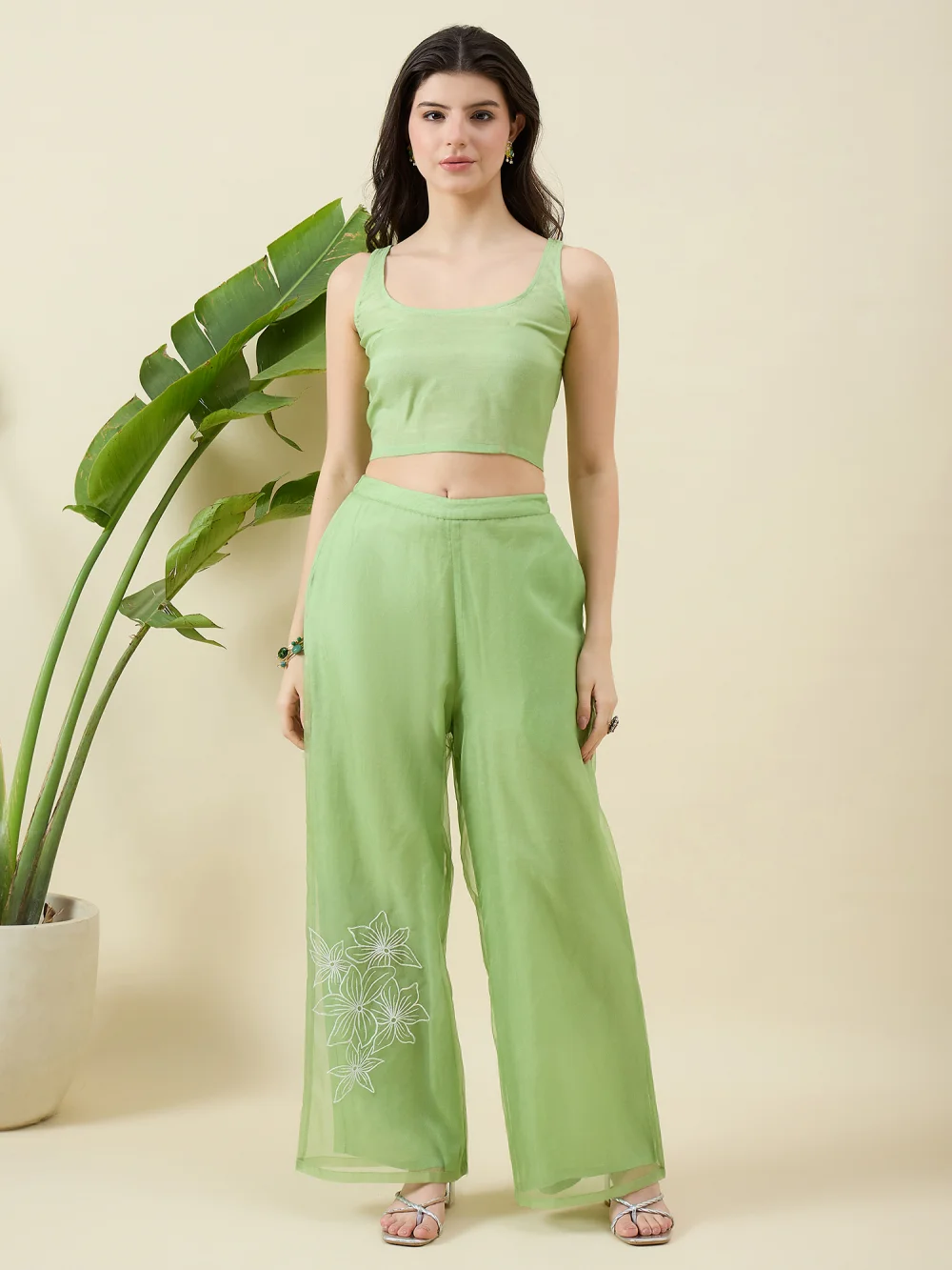 Pista Green Organza Co-ord Set