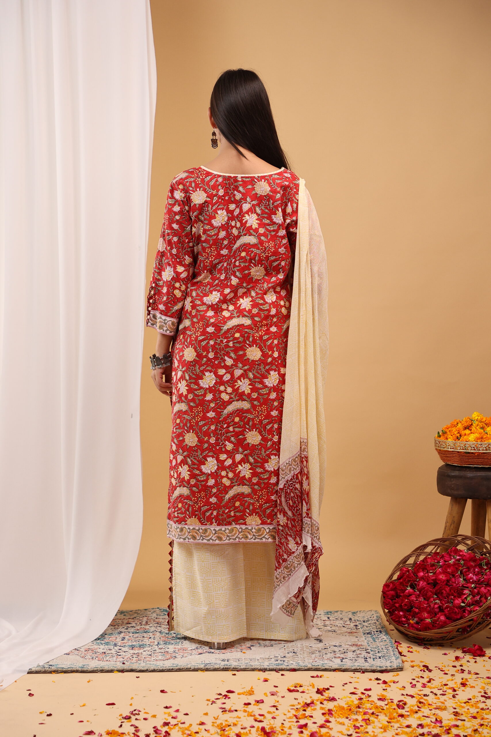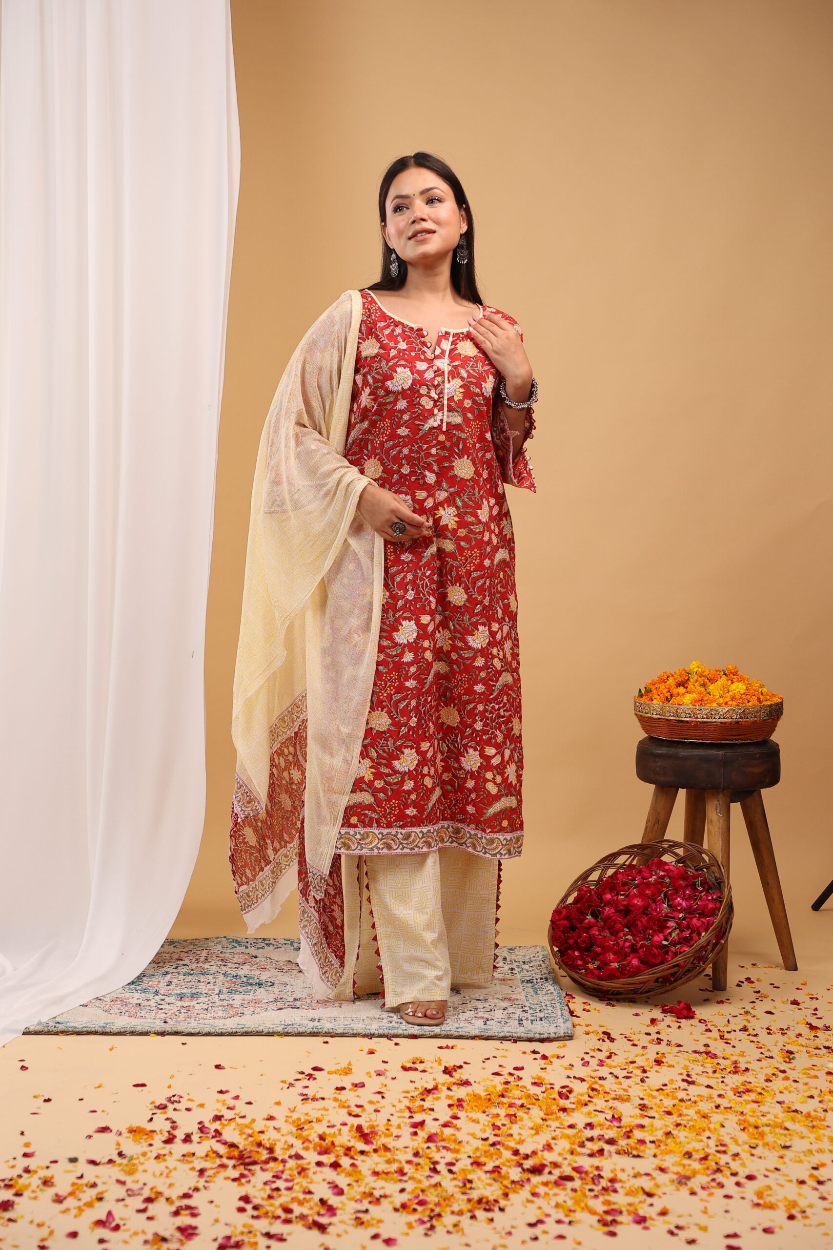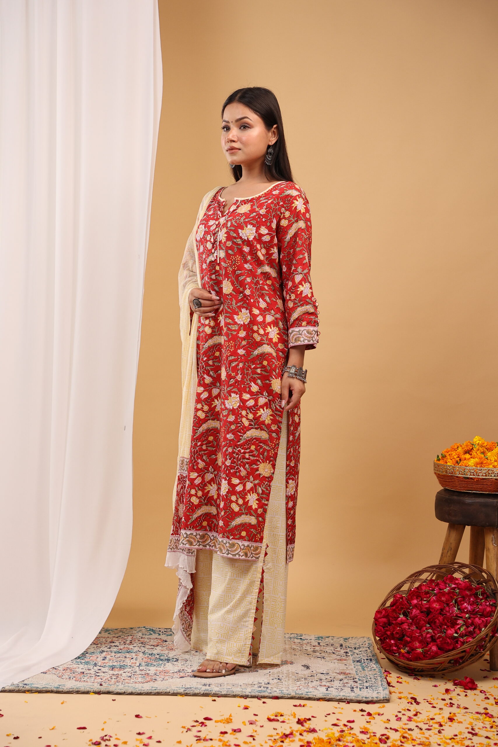 Ruby Garden Floral Straight Kurta Set with Dupatta