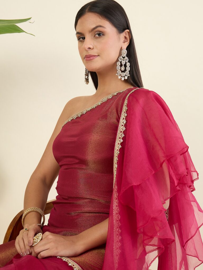 Shimmer Draped Saree And blouse
