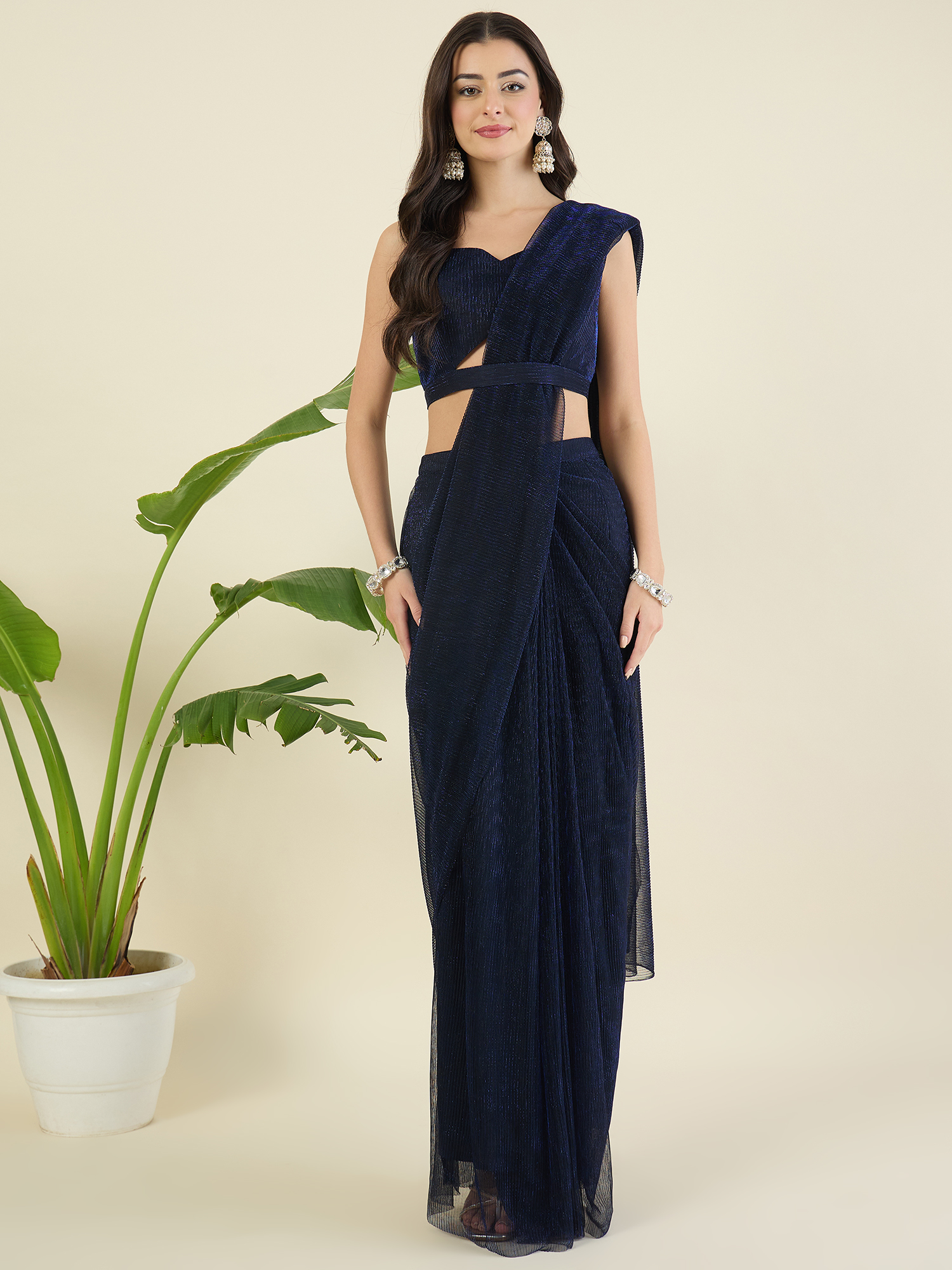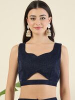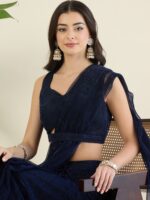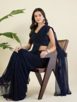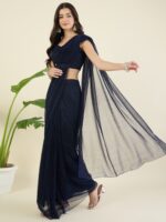 Navy Blue Shimmer Draped Saree and blouse