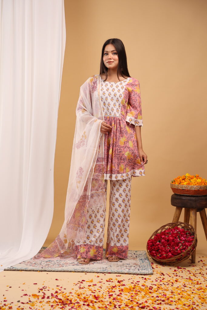 Printed Pink Organza Co-ord Set