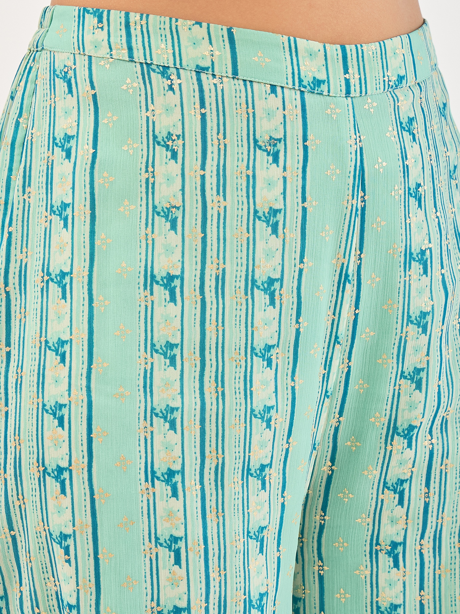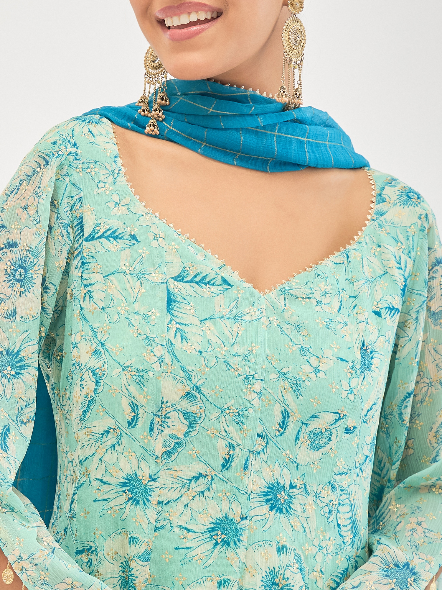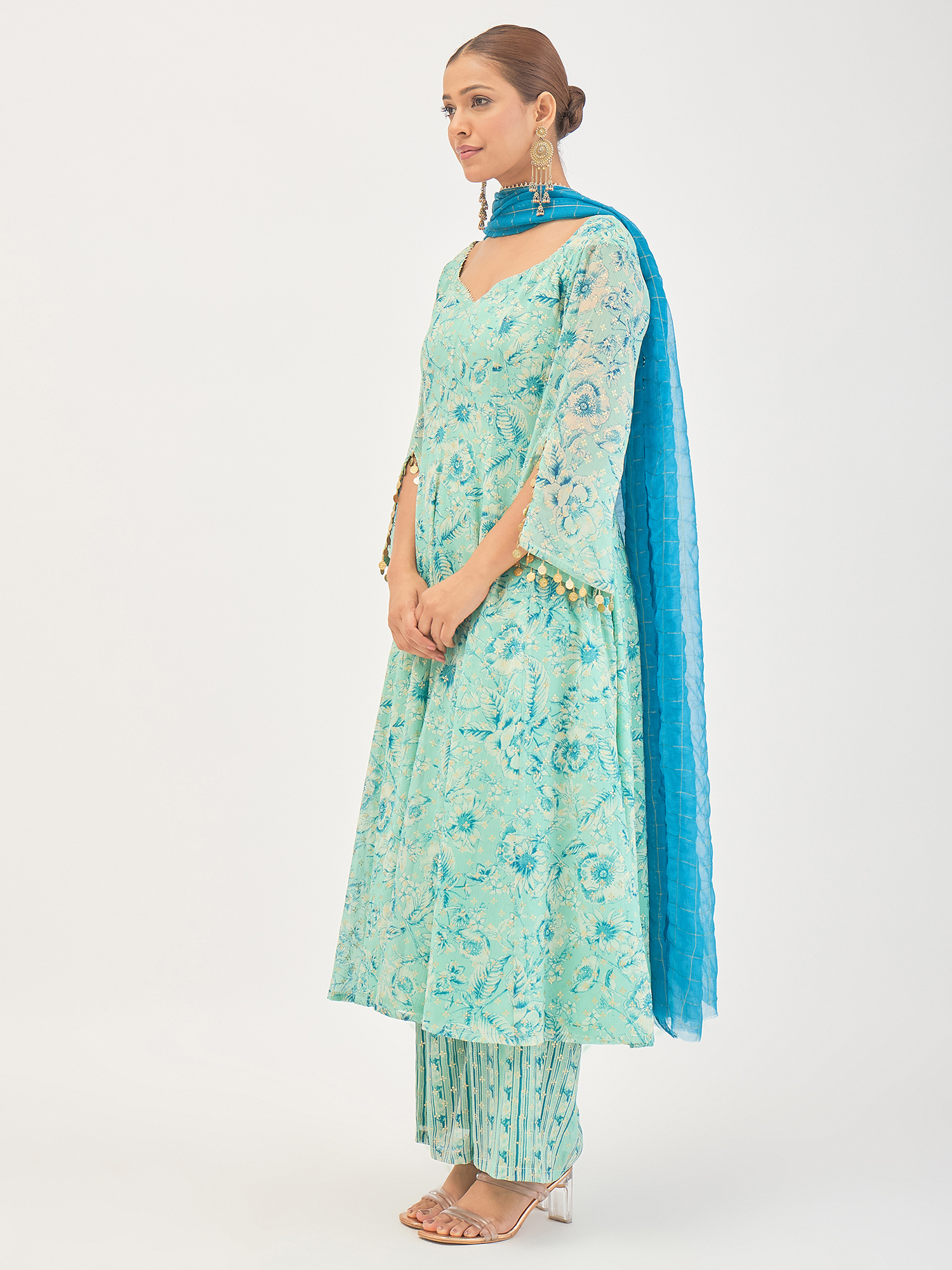 Green & Blue Printed Kurta with Trousers & Dupatta