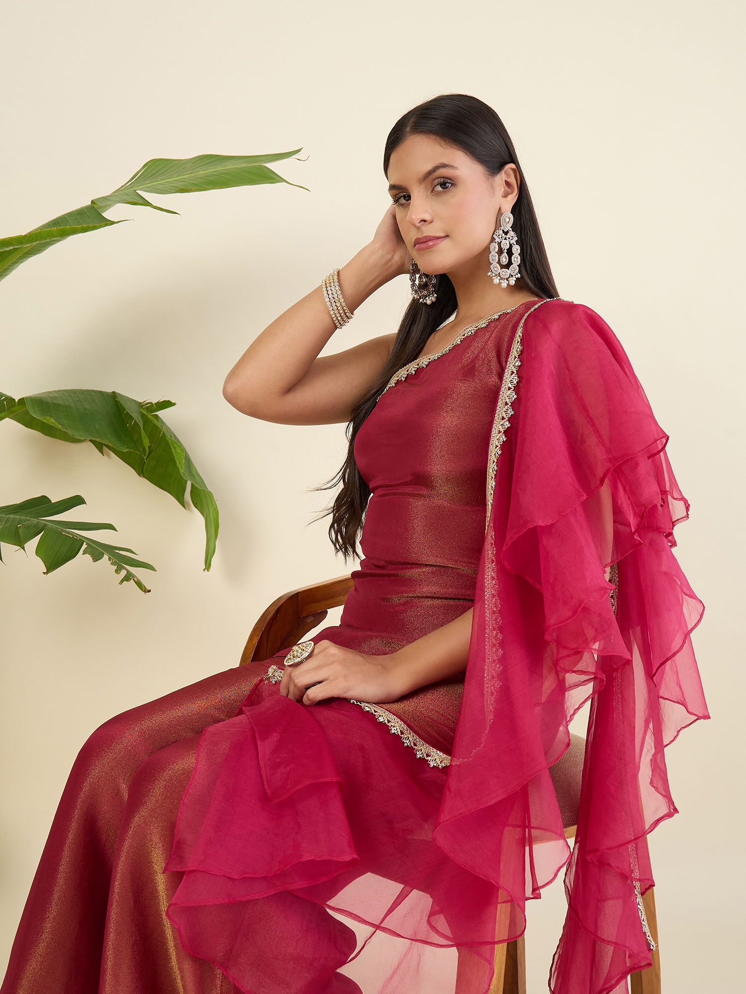 Shimmer Draped Saree And blouse