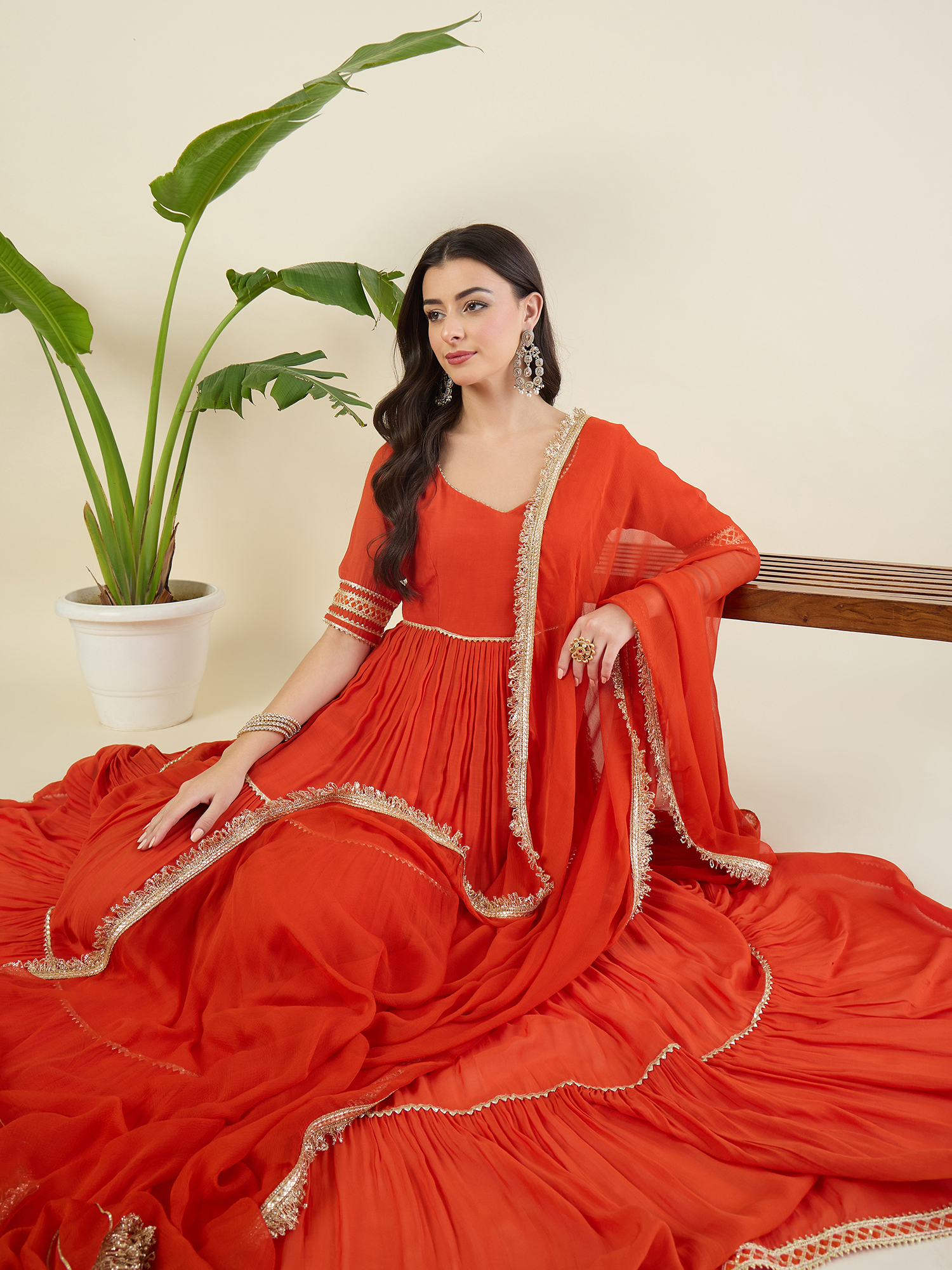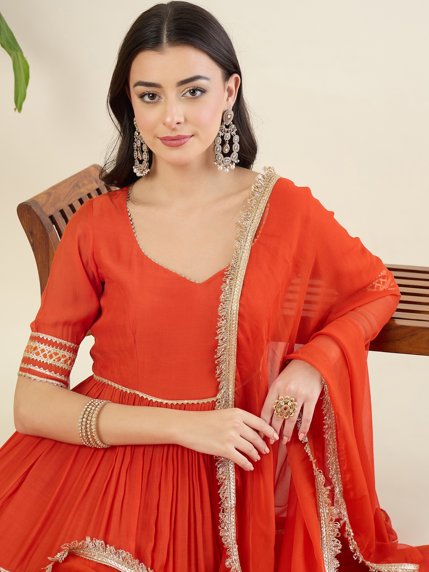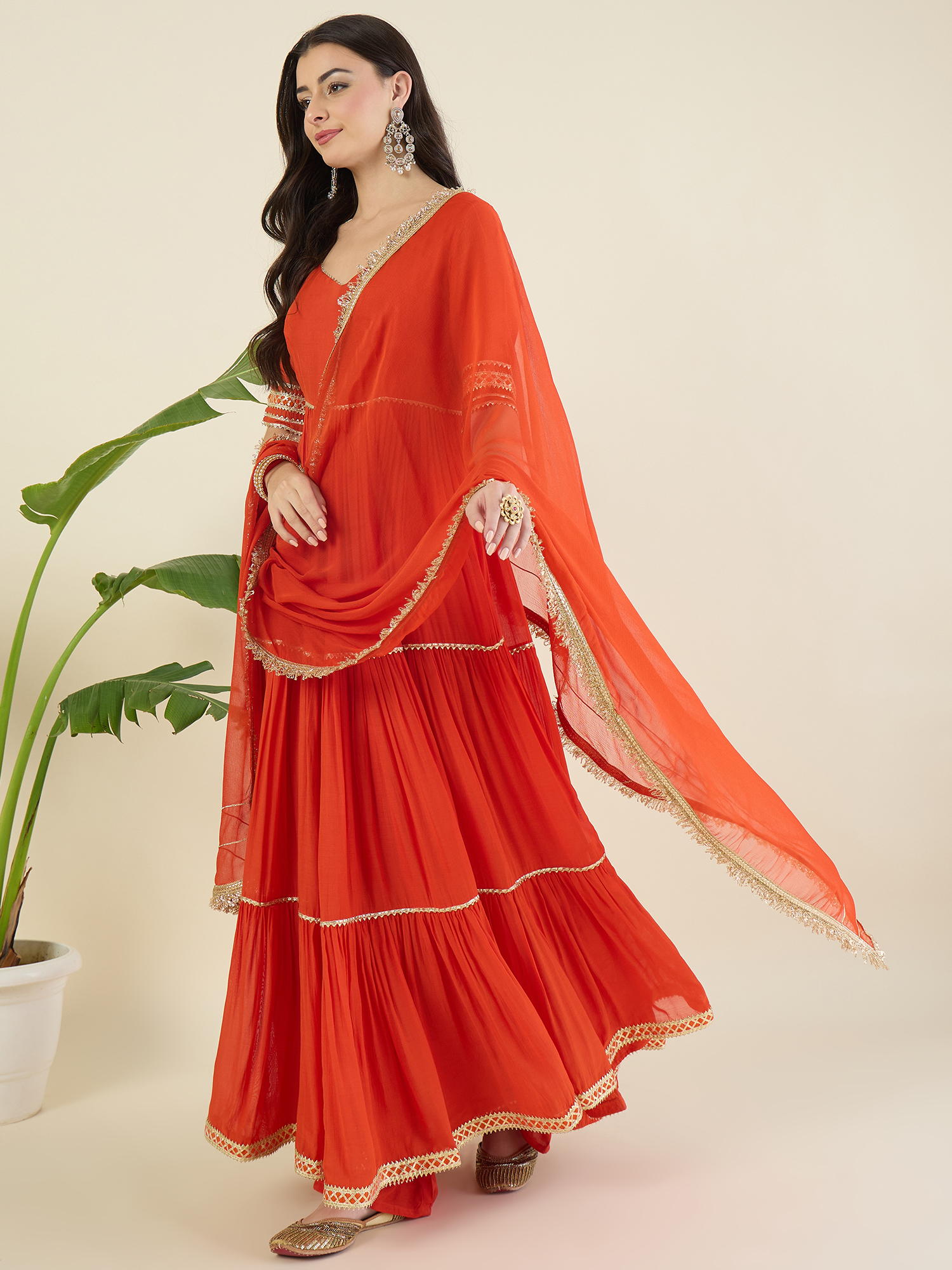 Women Tiered Gotta Patti Chanderi Cotton Kurta with Palazzos & With Dupatta