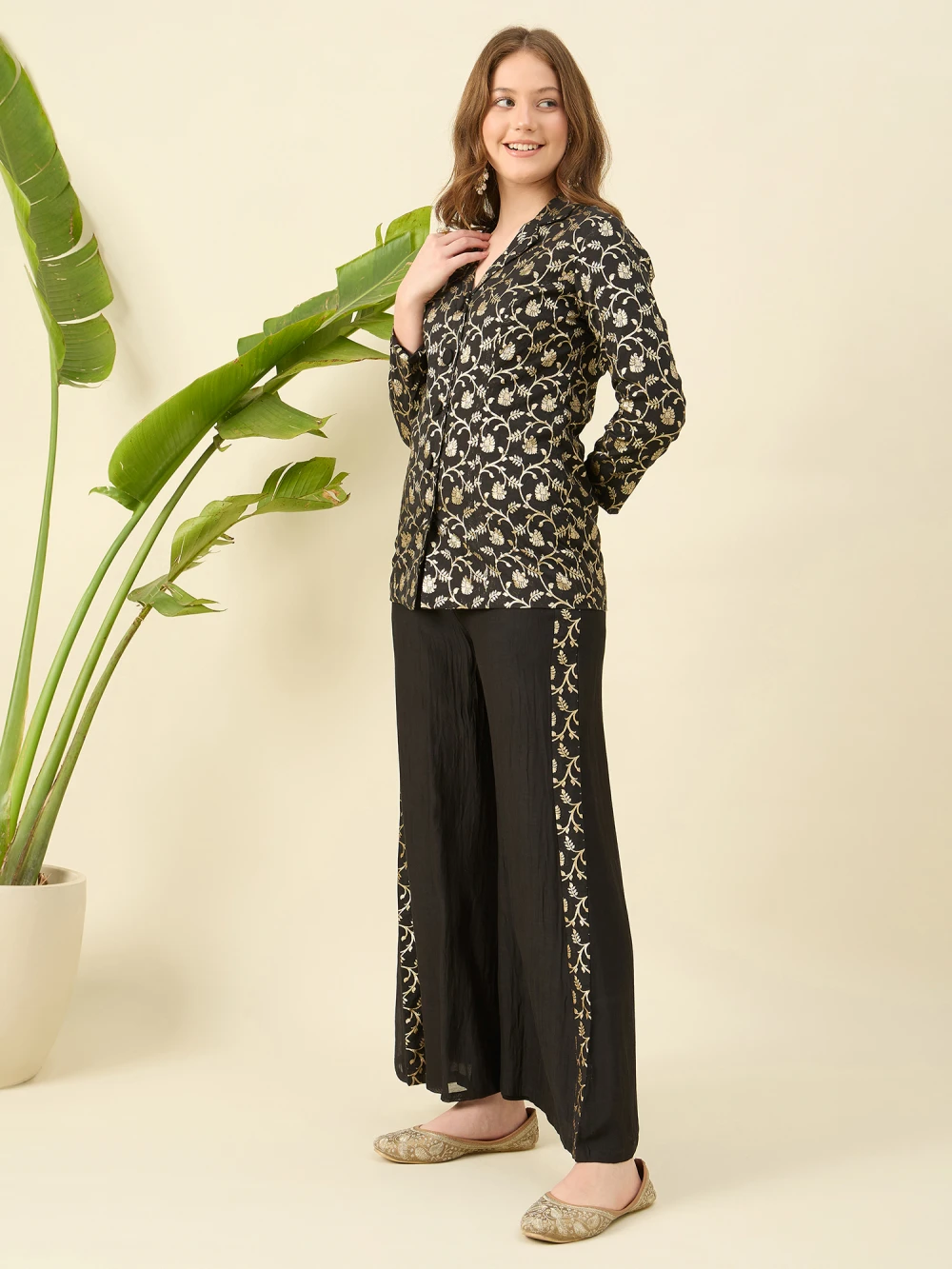 Women Crop Top & Printed Kaftan With Trouser Co-Ord Set